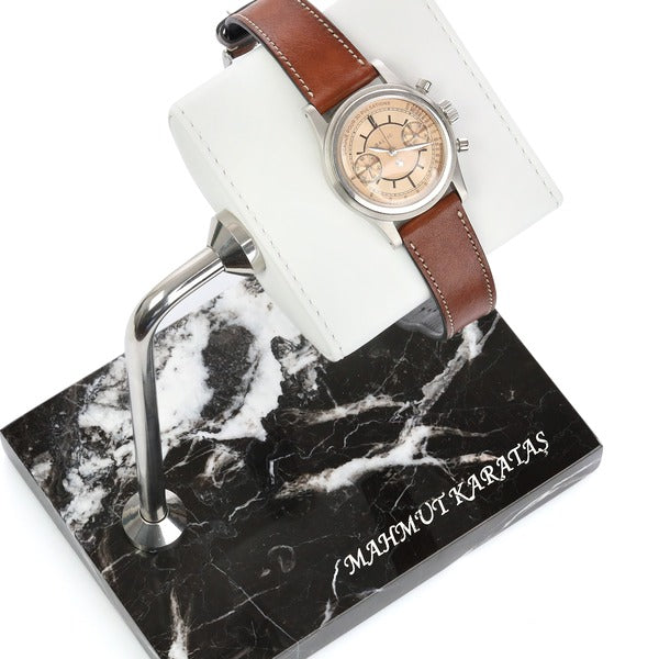 Gerçek mermer ve deri kullanılarak el işçiliği ile üretilen Nero Saat Standı; Ofis masanızda veya evinizde saatlerinizi şık bir şekilde muhafaza etmek veya saat sever dostlarınıza üzerinde isimlerinin olduğu harika bir hediye vermek için tasarlamıştır.