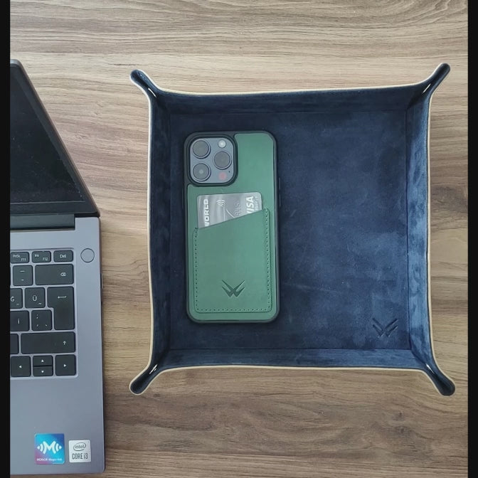 Dışı gerçek dana derisi içi oğlak süet olup tamamen el işçiliği ile atölyemizde deri ustalarımız tarafından üretilen Octavia Bej Lacivert Vale Deri Tepsi sayesinde anahtar, telefon, saat veya bozuk para gibi eşyalarınızı şık bir şekilde muhafaza edecek ve kaybolmalarını önleyeceksiniz. Ofis masanız veya eviniz girişinde harika bir aksesuardır.