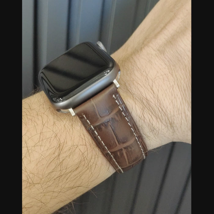 Apple Watch Deri Kordon - B. Dikiş Kahve Kroko