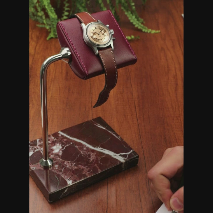 Gerçek mermer ve deri kullanılarak el işçiliği ile üretilen Rosso Saat Standı; Ofis masanızda veya evinizde saatlerinizi şık bir şekilde muhafaza etmek veya saat sever dostlarınıza üzerinde isimlerinin olduğu harika bir hediye vermek için tasarlamıştır.
