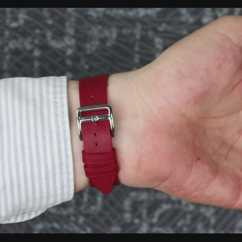 Deri Kordon; bordo renkli saffiano baskılı gerçek dana derisinden el işçiliği ile ustalarımız tarafından Ankara'da bulunan atölyemizde üretilmiştir. Arka tarafında uzun ömürlü olması için suya ve tere dayanıklı dana derisi kullanılmıştır.